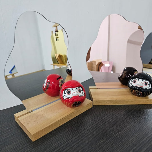 FBA113 Cloud Shape V2 Acrylic Mirror Board with Solid Wood Stand and Rubber